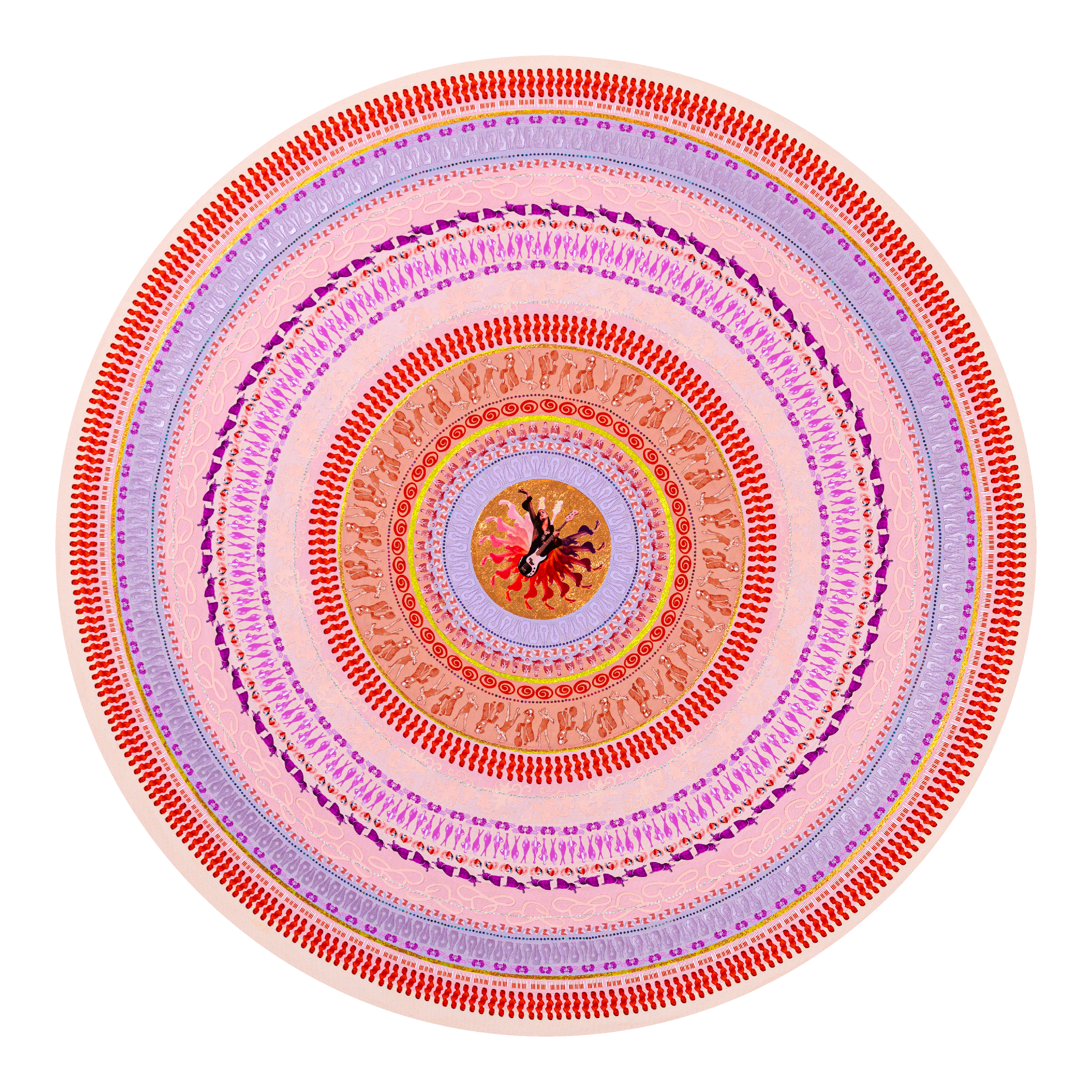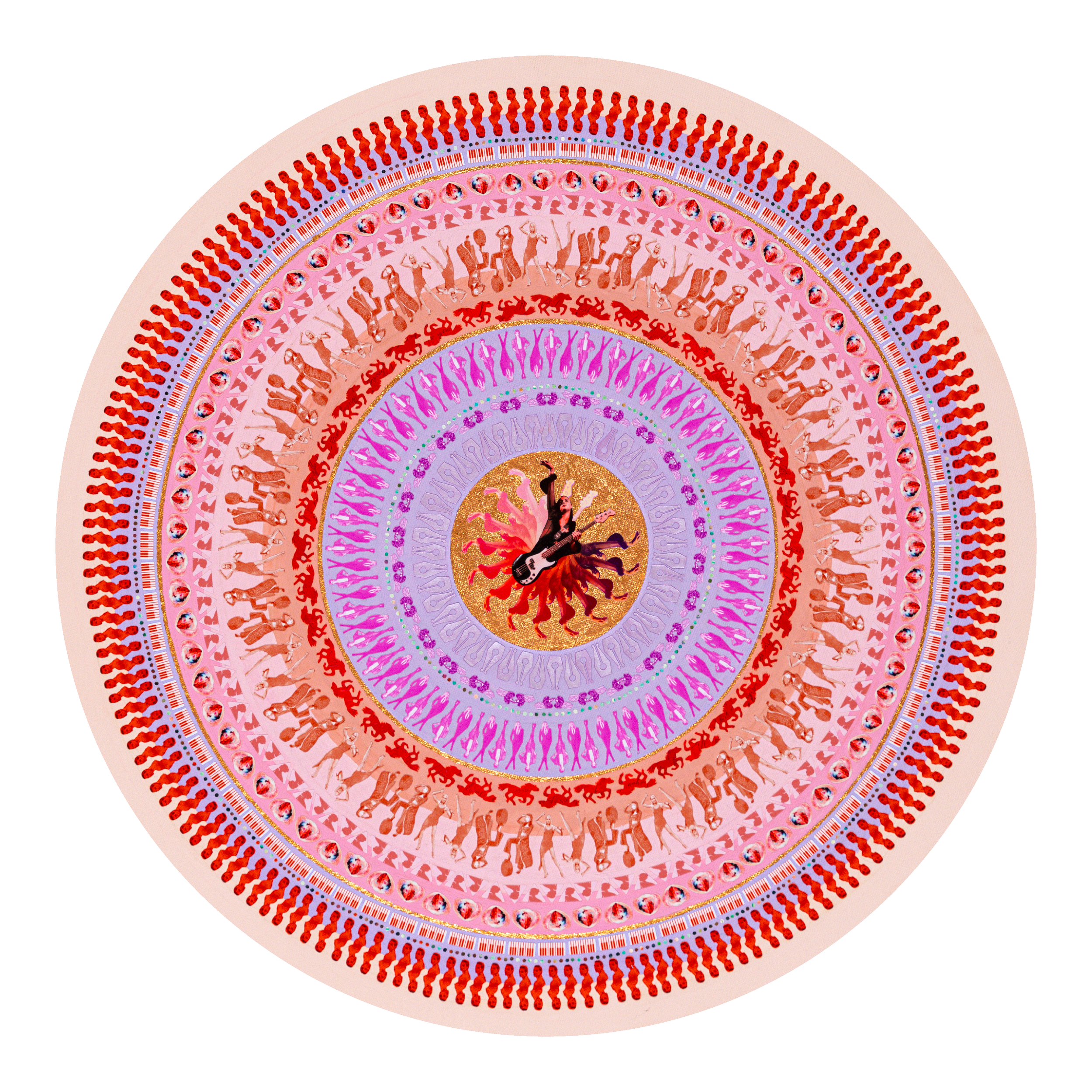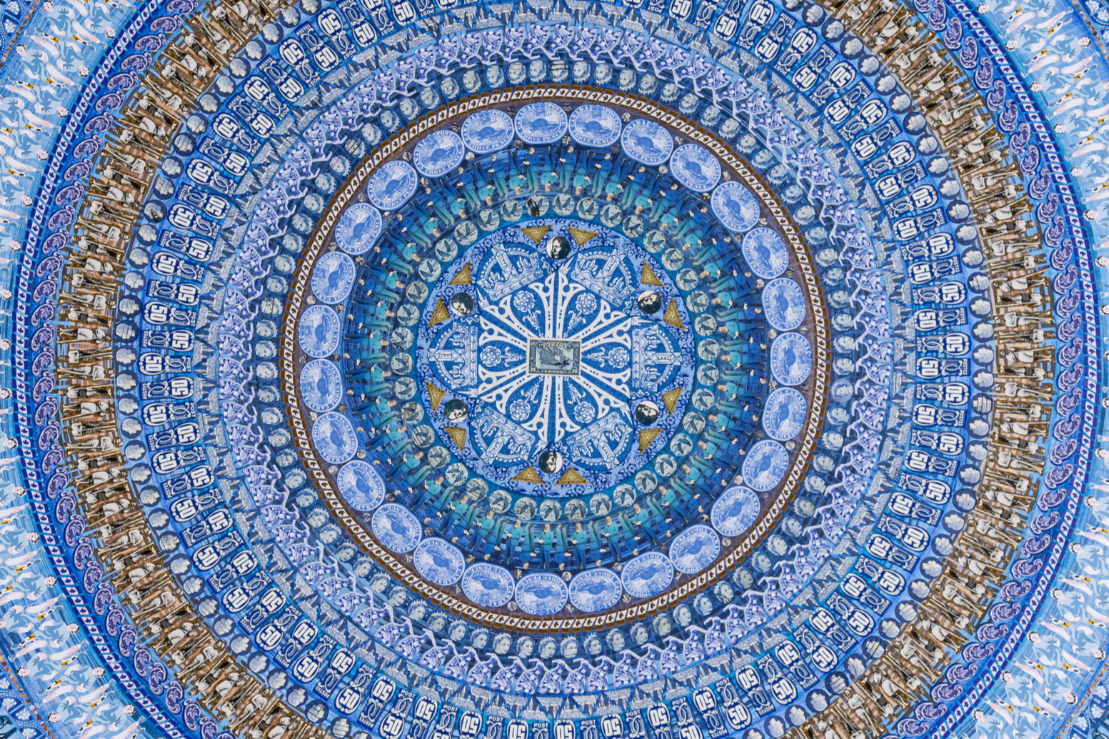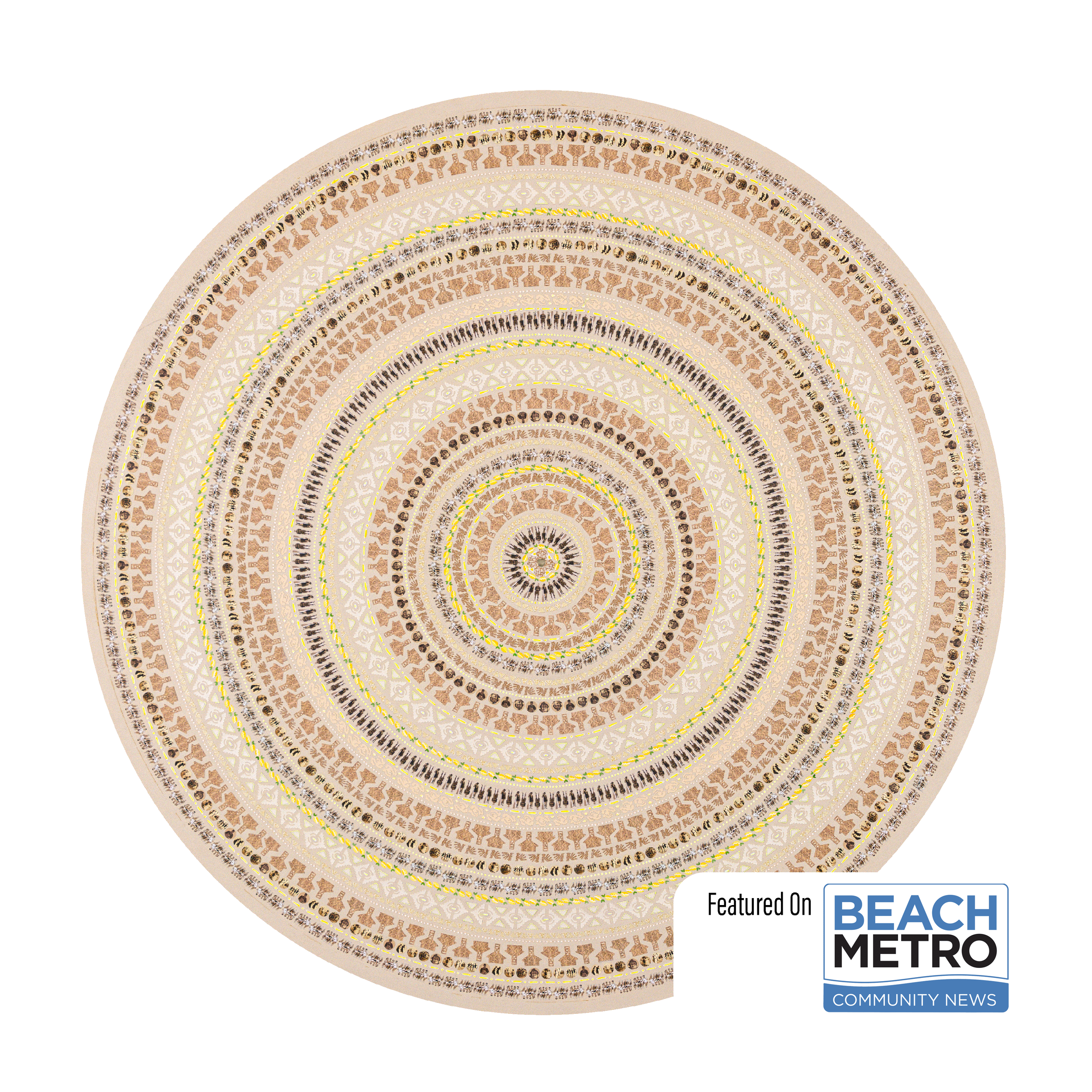 Lesley Luce creates intricate concentric compositions from thousands of hand-placed paper fragments. Drawn from archives, history, literature, and personal collections, these fragments form layered visual narratives that reward closer inspection.