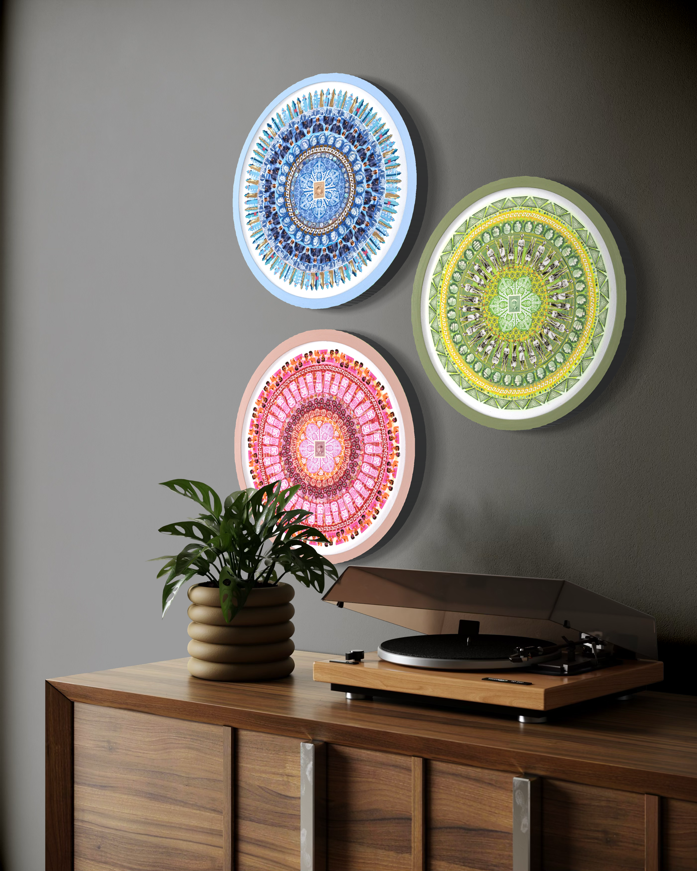 3 panels, 12 inches in diameter