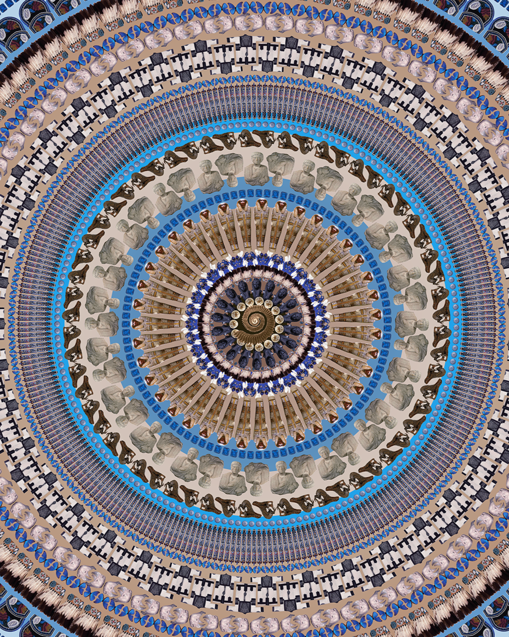 The artwork is composed of thousands of hand-placed paper images, each sourced from the ROM’s collection, archives, and institutional history.